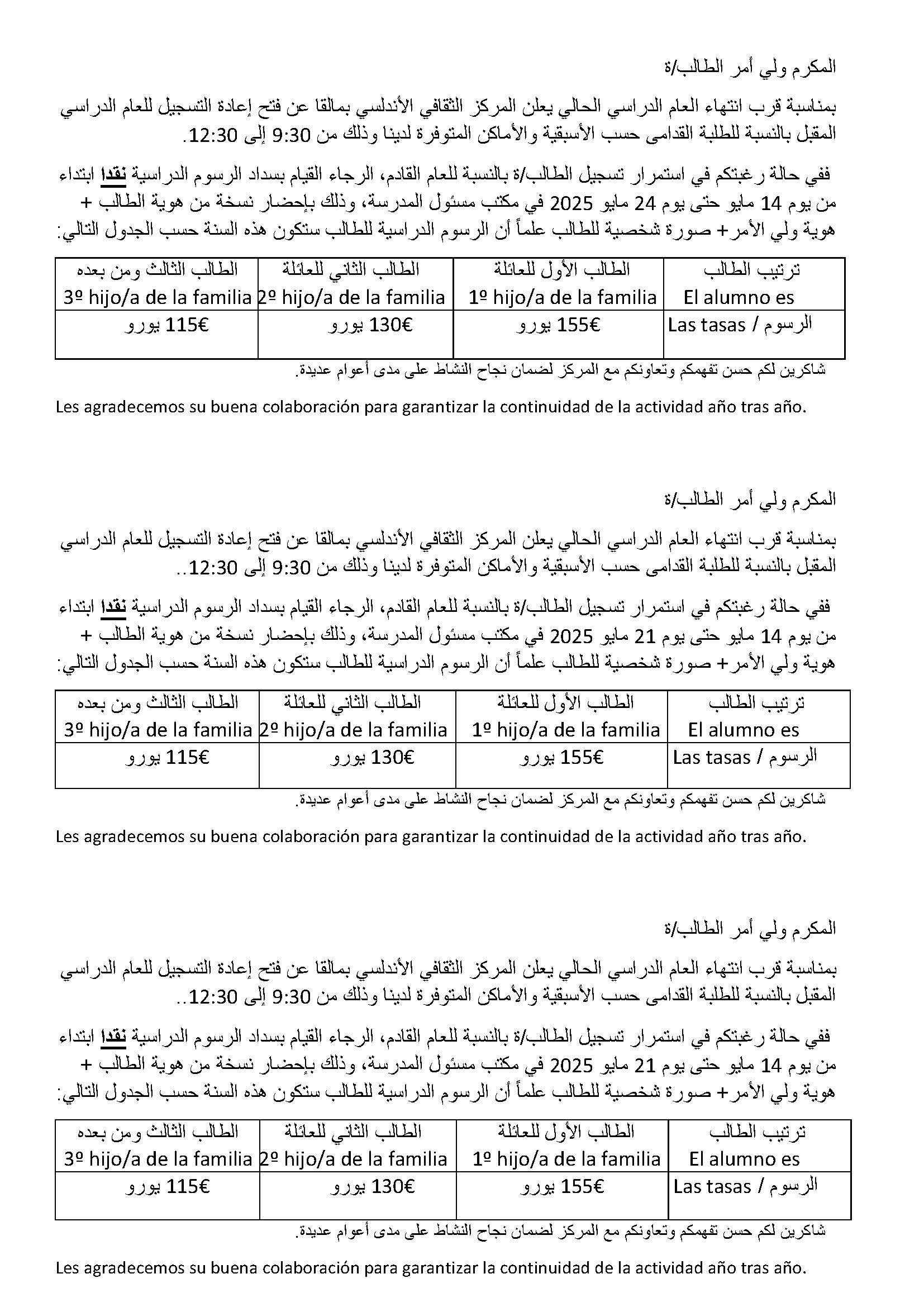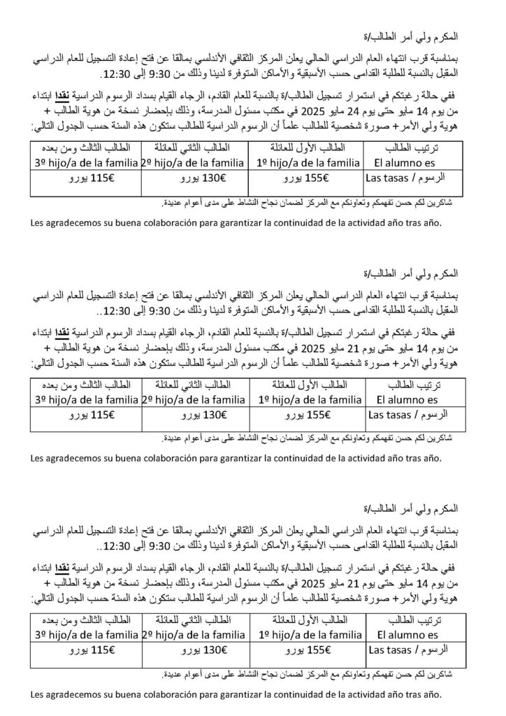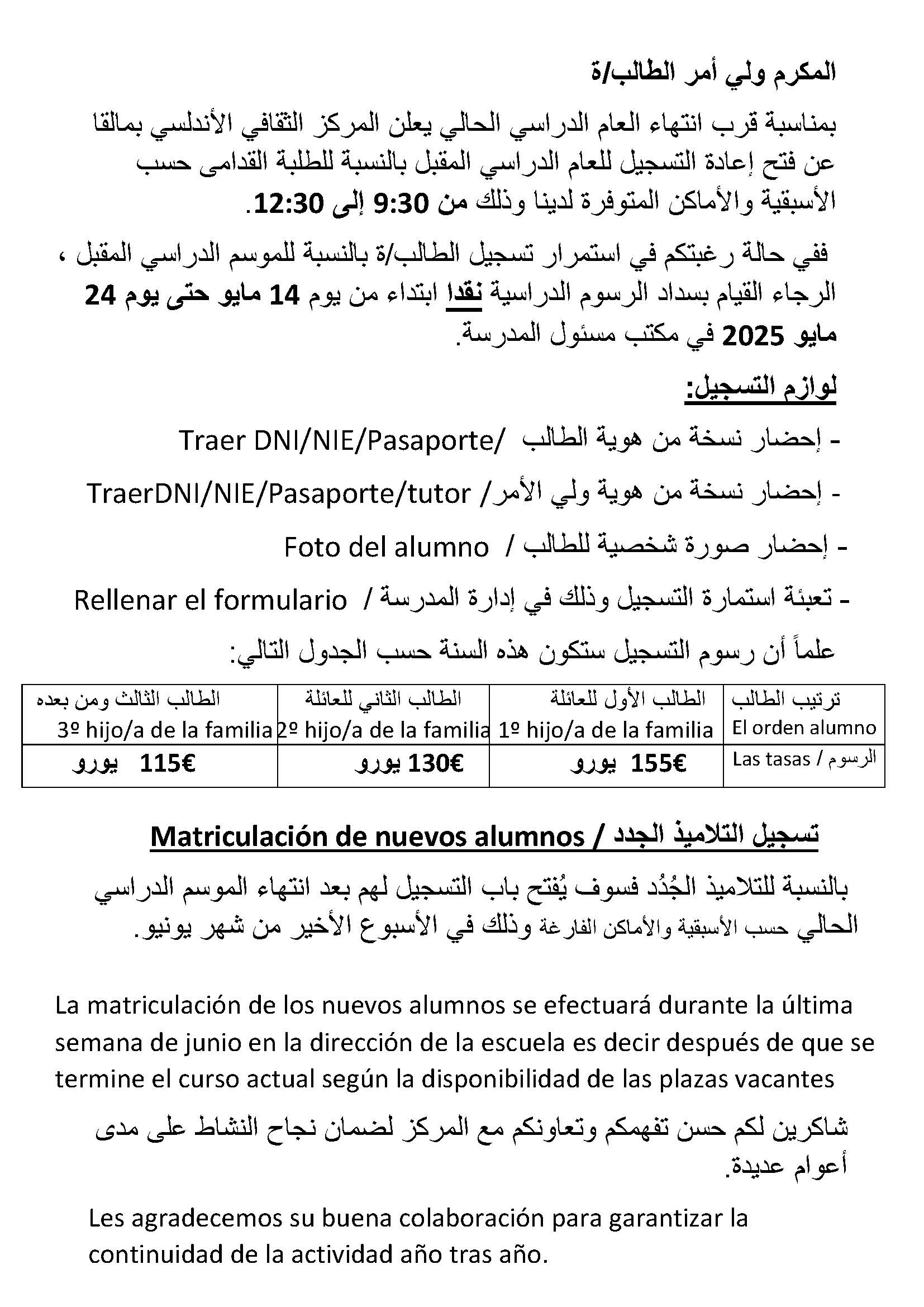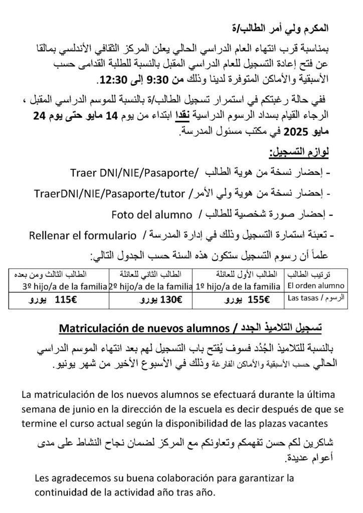Matriculación de antiguos alumnos/تسجيل التلاميذ القدامى